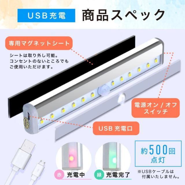 人感 センサーライト LED 電池式 USB充電 室内 野外 簡単取り付け 玄関 階段 照明 足元灯 自動点灯 感知 省エネ 屋外 廊下 防犯 1000円 ぽっきり