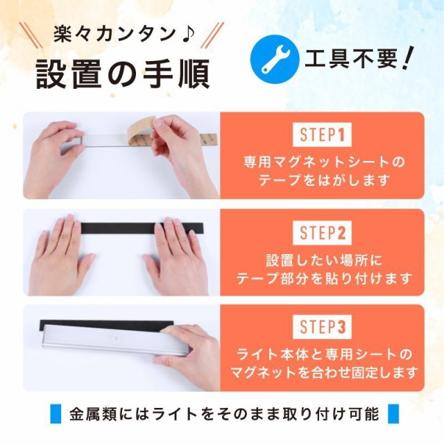 テープ付きのマグネットシートでどこでも簡単に設置することが可能。
