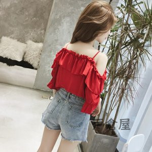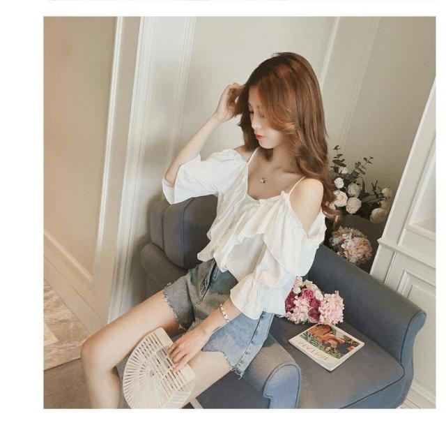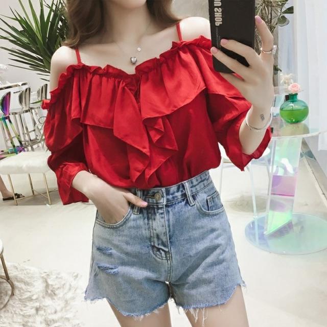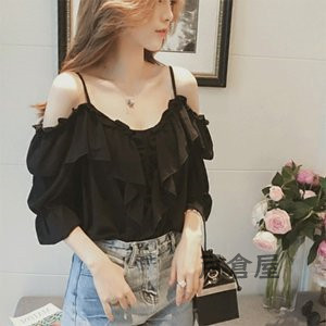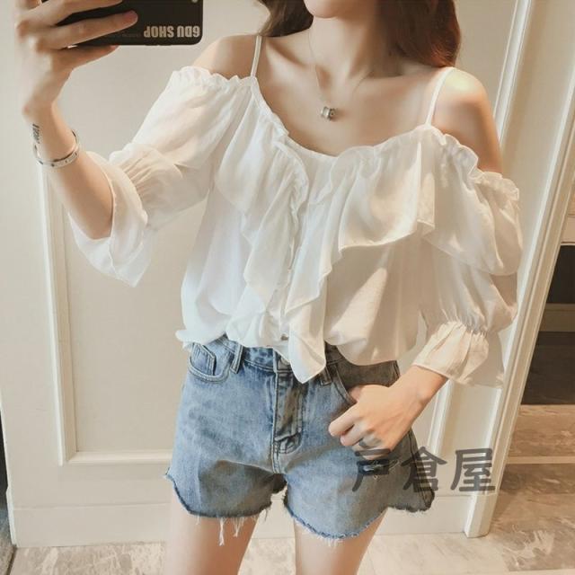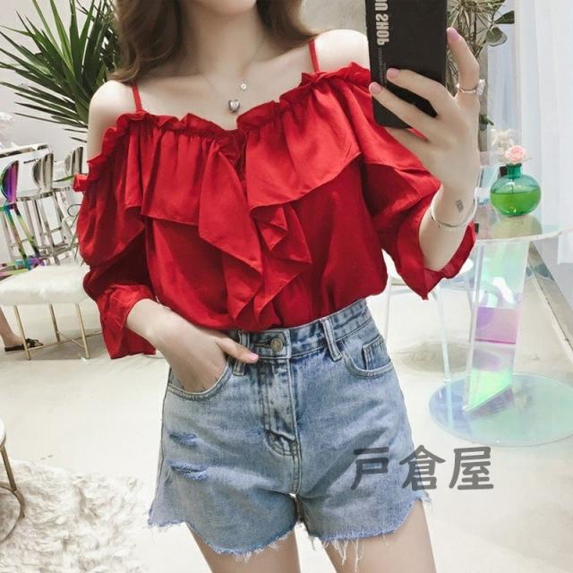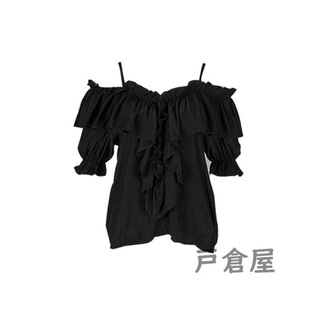シャツ ブラウス 七分袖 ボートネック オフショルダー キレイめ カジュアルフリル フレア