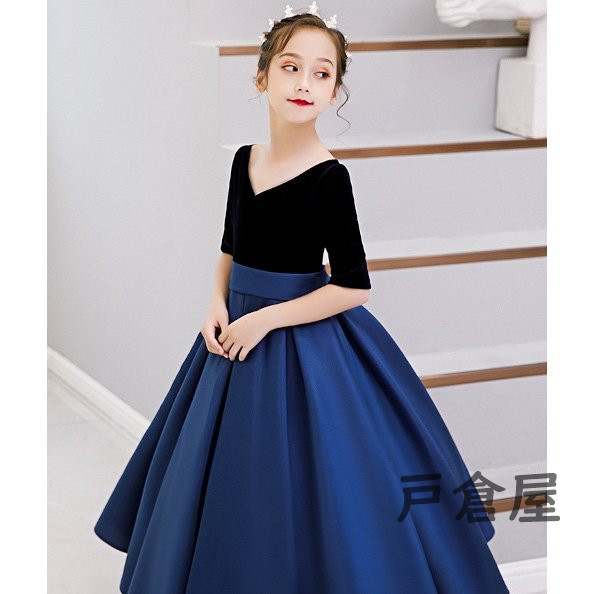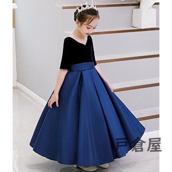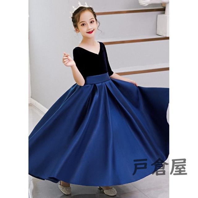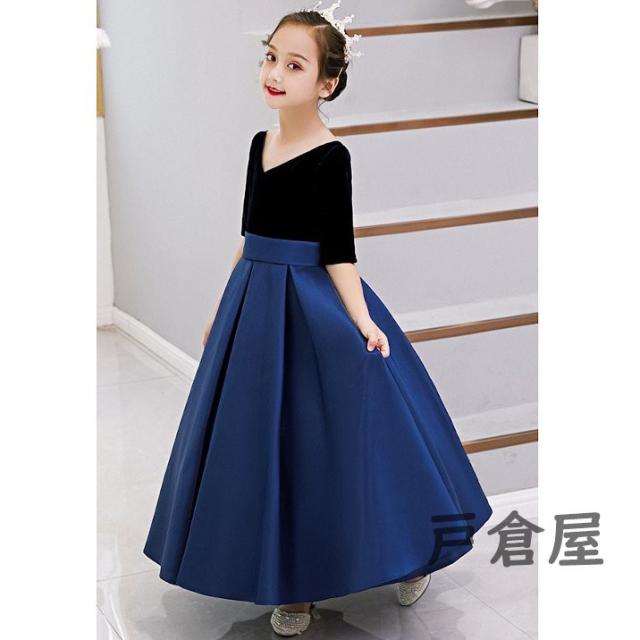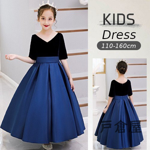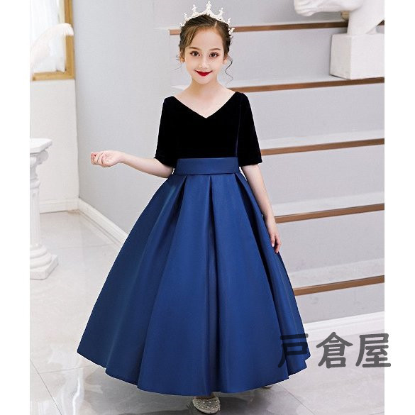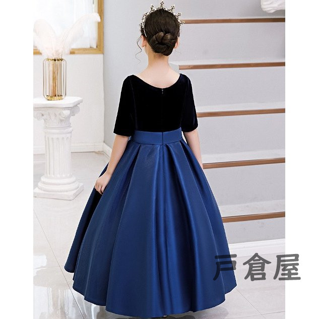 黒/ブルー 子供ドレス 女の子 キッズ パーティー 入園 結婚式 発表会 可愛い おしゃれ 安い ワンピース 子供服 卒園式 入学式 パーティードレス フォーマル