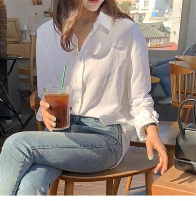 シャツ 白 長袖 レディース ブラウス ゆったり ワイシャツ コットン 長袖シャツ オフィス ホワイトシャツ レディースシャツ コットンシャツ 通勤