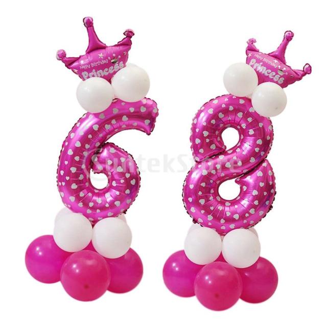 番号6と8クラウン風船列セットお誕生日おめでとうアーチガーランドピンク