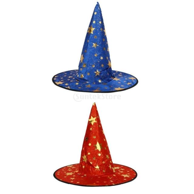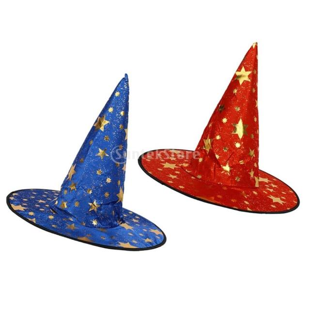 子供 ウィザードの帽子 魔女の帽子 小悪魔 星柄 ハロウィーン パーティー コスプレ道具 2枚セット