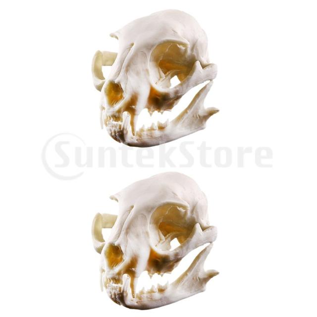 水槽のテラリウムの7.5センチメートルのための2倍樹脂置物猫の頭蓋骨スケルトンの装飾
