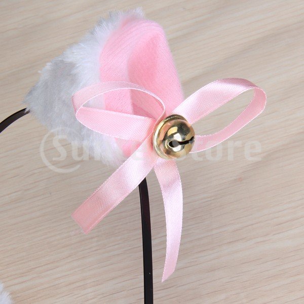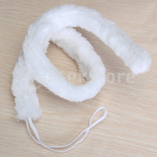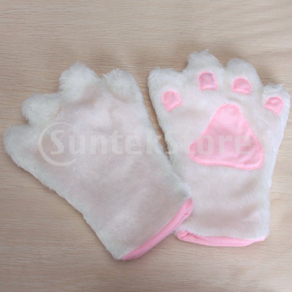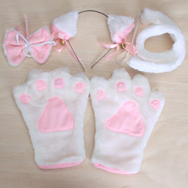 ノーブランド品 萌え萌えにゃんこ コスプレ4点セット 猫耳カチューシャ 猫手 手袋 首輪 蝶ネクタイ しっぽ (ホワイト)