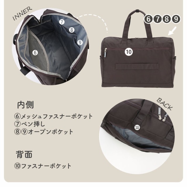 | 商品説明 | ・anelloGRANDE(アネログランデ)のキャビンシリーズから、35Lの大容量!2WAYボストン(Lサイズ)が登場。 ・2〜3泊の旅行や出張、ジム通いにおすすめなビッグサイズ!表生地には、水滴や汚れをサッと弾く軽量はっ水加工生地を採用。 ・持ち手ハンドルを使って肩掛けしたり、取り外し&長さ調節可能なショルダーベルトを取り付けて、ショルダーバッグとしても使える2WAY仕様。 ・メイン収納開口部はダブルファスナー式で大きく開き、出し入れがしやすい! ・内側はしっかりマチがあり、着替えなど必要な荷物がひとまとめにできるサイズ感。メッシュ生地のファスナーポケット×1、オープンポケット×2、ペン挿し×1付き。 ・前面にサッと取り出したい小物の収納に便利な、ファスナーポケットを配置。内側にメッシュポケット×2付き。 ・両側面にペットボトルなどが収納可能なオープンポケット、背面にファスナーポケットを1つずつ配置。 ・背面にはスーツケースやキャリーケースのバーに通して使用できる、面ファスナー式のベルト付き! ・季節を問わずコーディネートしやすい、優しいニュアンスカラーを中心にラインナップ。色味を切り替えたファスナー引き手が、デザインのワンポイント♪ |