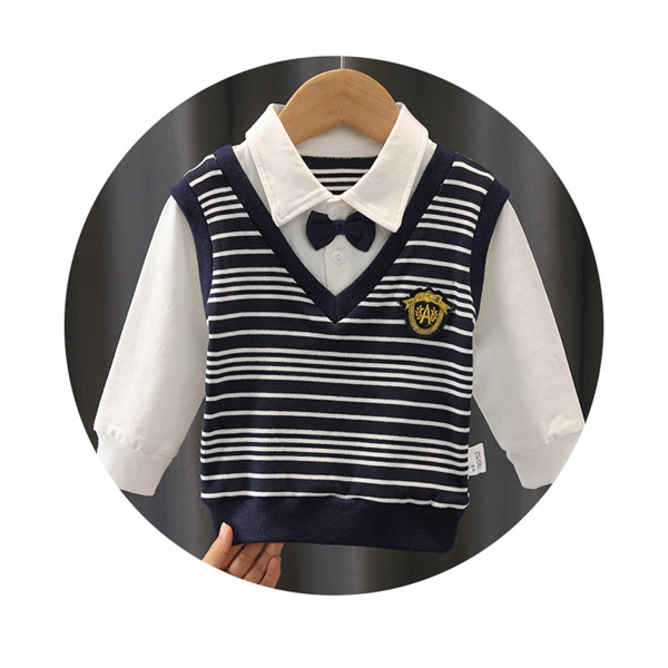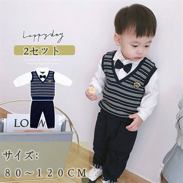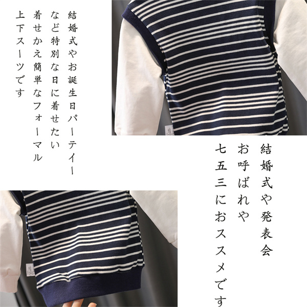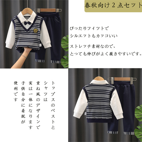 【2点セット】子供服 男の子キッズ ベビー服 上下セット 紳士 セットアップ ボーダー柄 子供服 男の子 秋 春 パンツ ジュニア 長袖 おそろい