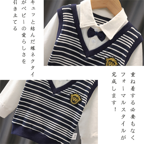 結婚式や入園式などにおすすめ!蝶ネクタイとベストでフォーマル風の正統派の長袖カバーオール!