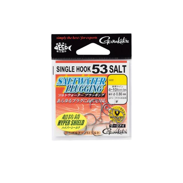 フレッシュウォーターにおいてプラッギング専用シングルフックの定番「シングルフック 53」にソルトウォーター対応機種。