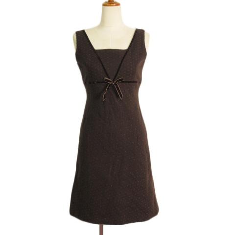 【中古】カールパークレーン KarL Park Lane ワンピース リボン 刺繍 アイレットレース ノースリーブ 9 茶 レディース