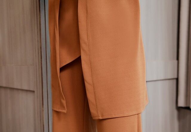 シワになりにくいサラサラ素材が高級感を感じさせるパンツスーツセットアップです。