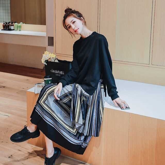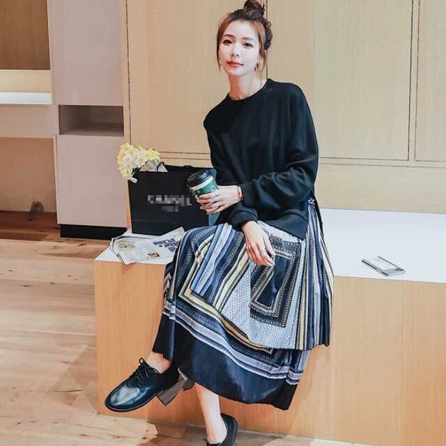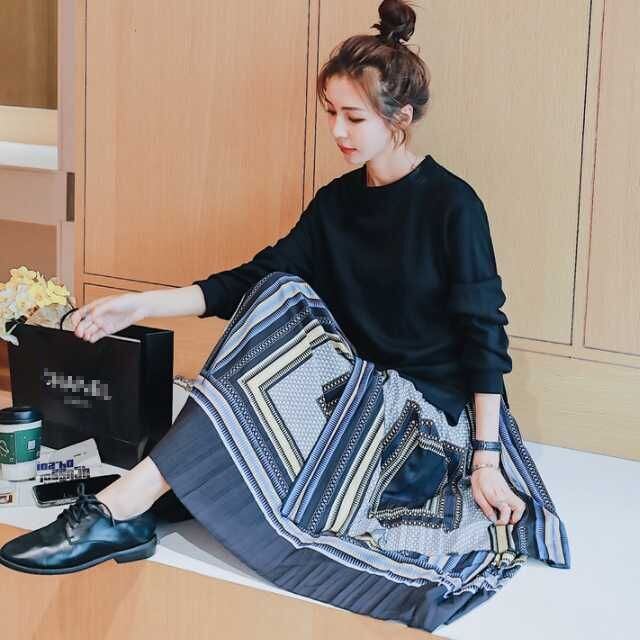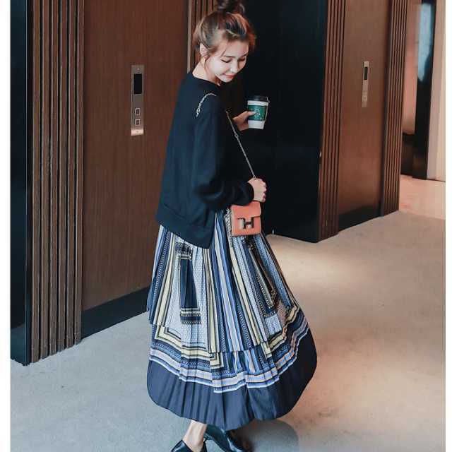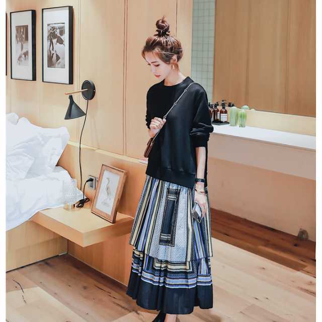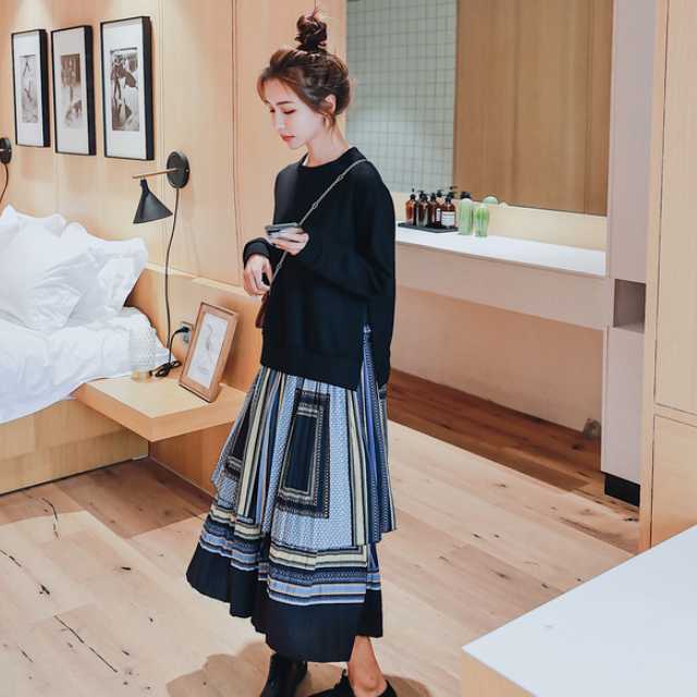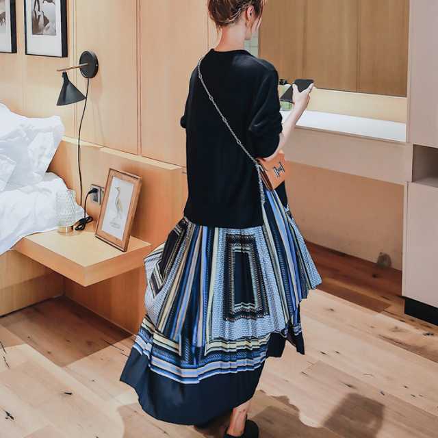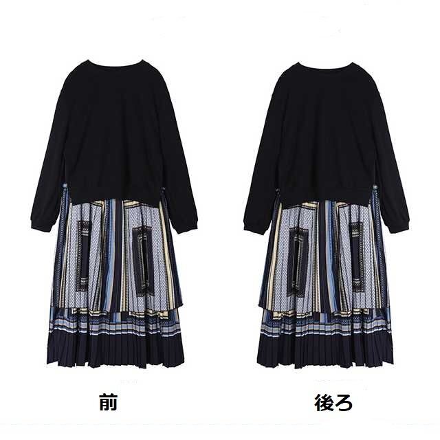 ワンピース ニットワンピース ロングワンピース レディース 長袖 ドッキングワンピース ニットワンピース ニット プリーツスカート 幾何学模様 ロングワンピ プリーツ 長袖ワンピース ニットワンピ きれいめ 清楚 上品 キレセク
