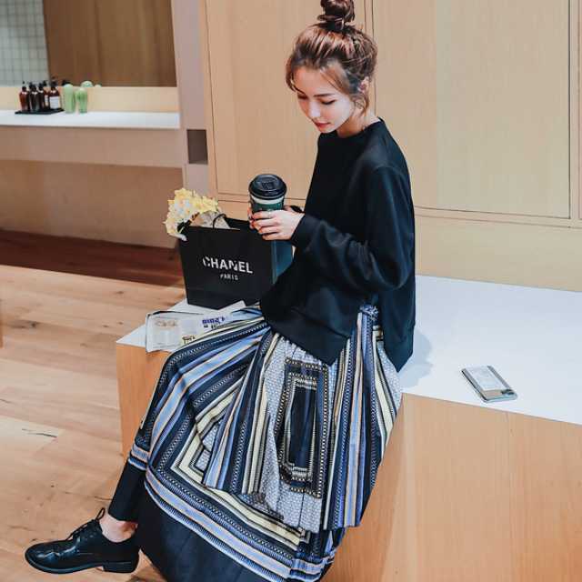 シンプルなニットに軽やかなフレアスカートをドッキングしたお洒落なワンピース♪