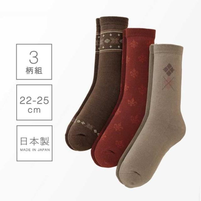 靴下,くつした,くつ下,丈長タイプ,ふくらはぎ,冬用,秋冬用,婦人靴下,ウール混,パイル,人気,3柄組,セット,ライトブラウン,ブラウン,エンジ,茶系,赤系,レッド,バーガンディー,ワンポイント,アースカラー,柄,アーガイル,スノー,雪,結晶,模様,やわらかい,柔らかい,ソフト,肌触り,ソフトタッチ,快適,心地よい,もこもこ,モコモコ,ふわもこ,フワモコ,ふわふわ,フワフワ,ふっかふか,もふもふ,モフモフ,おしゃれ,お洒落,オシャレ,かわいい,可愛い,大人かわいい,大人可愛い,おすすめ,素材,生地,気持ちいい,ぽかぽか,ポカポカ,暖かい,暖か,あったか,あったかい,暖かい,あたたかい,温かい,冷えない,あったか温め,温活,防寒,冷え症,対策,冷え対策,寒さ対策,冷え取り,冷えとり,防寒冷え,真冬,大人用,レディース,女性,女性用,婦人用,カジュアル,22cm,22センチ,23cm,23センチ,24cm,24センチ,25cm,25センチ,22-25cm,ゆるめ,跡がつかない,ゴムのかたがつかない,口ゴムなし,跡が残らない靴下,優しい履き心地,締め付け感なし,足にフィット,
