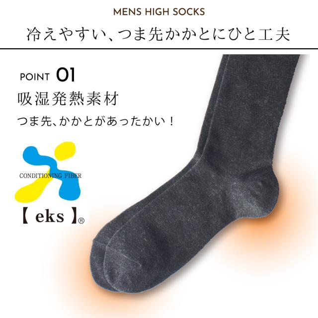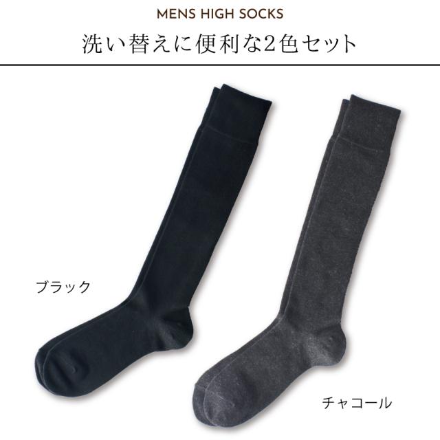 靴下 メンズ 2足組 25-27cm ハイソックス 丈長 吸湿発熱 あったか 履き心地 ベーシックカラー おしゃれ メンズ毛混ハイソックス 2色組