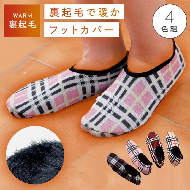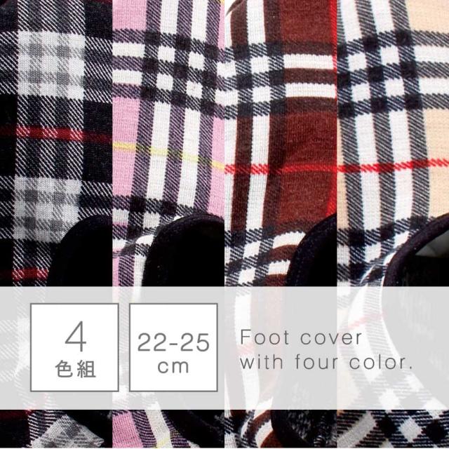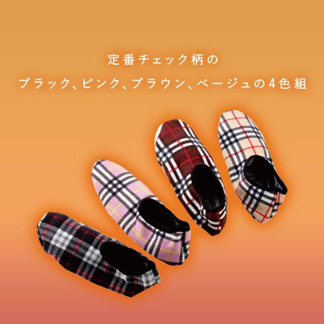 ルームシューズ レディース 4色組 22-25cm あったか 冬用 ルームソックス ルームカバー 保温性 室内用 スリッパ 滑り止め リラックス おうち 防寒 チェック柄カバー 4色組
