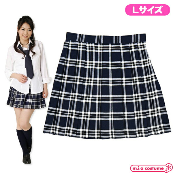 1153E■【送料無料・即納】 TE-10SS チェック柄プリーツスカート 色:紺×白 サイズ:L 制服 スクール 女子高生 学生服 ブレザー セーラー