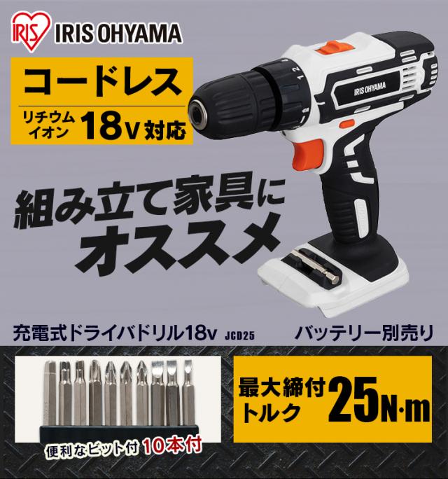 充電式ドライバドリル18V JCD25-Z ホワイト ドライバードリル ドリルドライバー ドリル ドライバ 電動 電気 充電式 18v 電動 工具 DIY 本体 バッテリー別売り 充電器別売り アイリスオーヤマ 送料無料