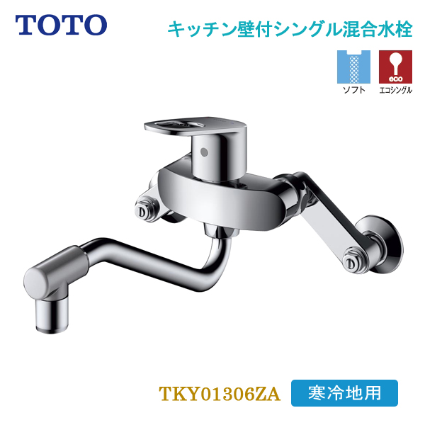 TOTO キッチン水栓 TKY01306ZA 壁付シングル混合水栓 寒冷地仕様 上スパウト シングルレバー エコシングル 壁付けタイプ 台所