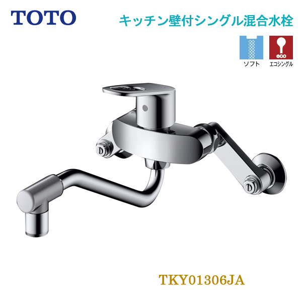 TOTO キッチン水栓 TKY01306ZA 壁付シングル混合水栓 寒冷地仕様 上スパウト シングルレバー エコシングル 壁付けタイプ メタルハンドル 節水 トートー 台所