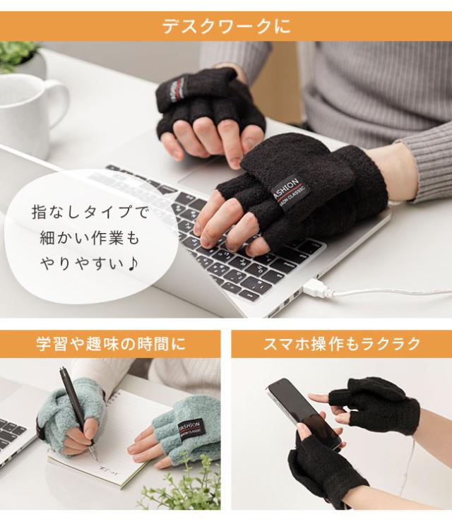 電熱 手袋 電熱グローブ ヒーターグローブ ヒーター手袋 ヒーター内蔵 USB 指なし 指ぬき 指出し ミトン フィンガーレス レディース メンズ 男性 女性 男女兼用 フリーサイズ ユニセックス スマホ デスクワーク 秋冬 冷え対策 あったかグッズ あったかい 防寒対策