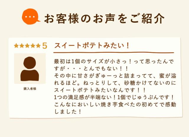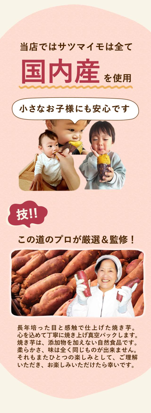 | 原材料 | さつまいも(国産) その他添加物等一切使用していない無添加の焼き芋です。 |