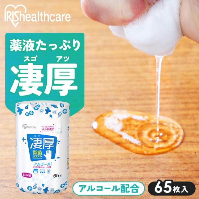 ウェットティッシュ 除菌シート アルコール アイリスオーヤマ * 凄厚 WTB-65A 65枚入 本体 ケース ボトル 除菌 大判 厚手 日本製 新生活 ウェットシート アルコールタオル エタノール 蓋 ふた 携帯 キッチン 防災 手口ふき 業務用 備蓄 家庭用 厚い