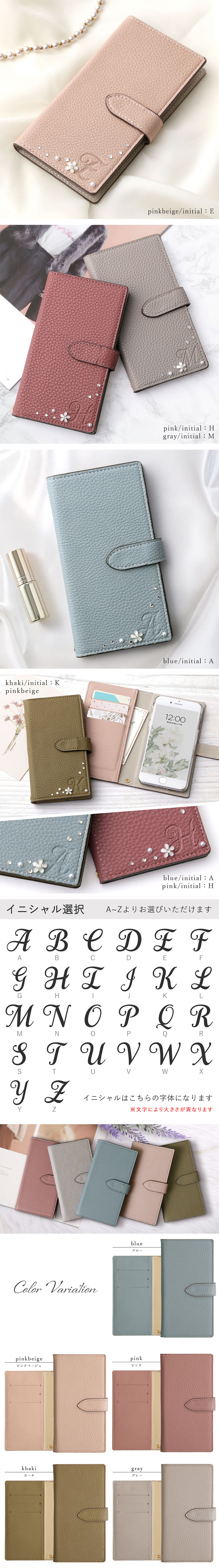 スモーキーなカラーと淵のブラウンがオシャレなベルト付きスマホケース全5色×イニシャル