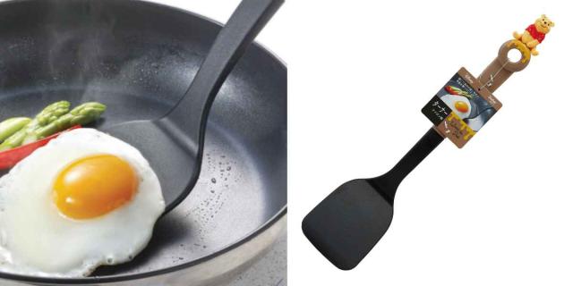 ちょこんと座る姿がなんとも可愛い、くまのプーさんのターナー(フライ返し)です。炒め料理や食材の返しに便利で、ヘラ部分が真っすぐになっており、卵焼きなどのときは斜めカットよりもまっすぐな形状の方が上手く行えます。