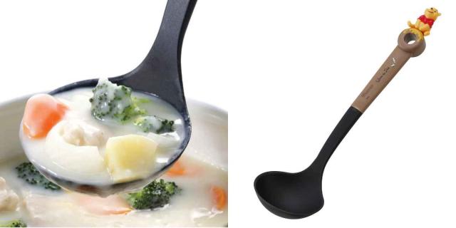 ちょこんと座る姿がなんとも可愛い、くまのプーさんのお玉です。お子さまでも軽々使えて持ちやすい「ミニサイズ」です。食材を調理するのに欠かせないお玉は、シチューやカレー、味噌汁などの汁物をすくって注ぐのはもちろん、食材をかきまぜたりするのにも重宝します。親子で楽しく料理の時間を過ごせます。
