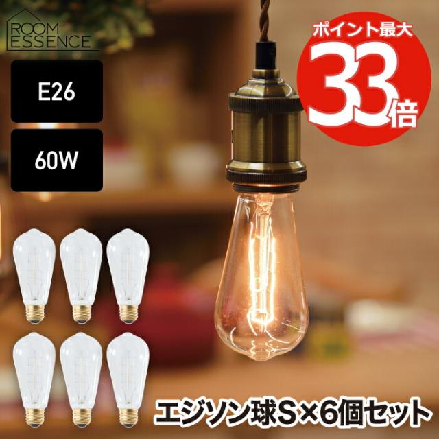 エジソン電球 エジソン球 S 6個セット E26口金 電球色 60W形 フィラメント エジソンバルブ レトロ アンティーク ビンテージ 電球 おしゃれ 6個パック 非調光 リビング 寝室 和室 玄関 階段 廊下 洗面所 トイレ 店舗デザイン かわいい 白熱球 LHB-90 新生活