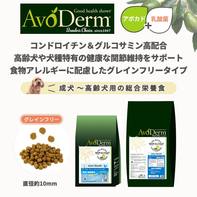 「愛犬の健康な関節維持」をテーマに、様々な犬種特有の関節トラブルをサポートします。コンドロイチン&グルコサミン高配合で関節の弱い犬種・活動犬・高齢犬に最適です。食物アレルギーに配慮したグレインフリータイプに仕上げ、アボカドオイル&ミール配合により、愛犬の健康な皮膚・被毛を保ちます。