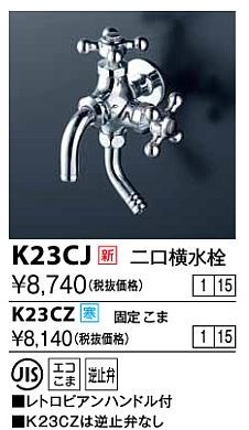 KVK 水栓金具【K23CJ】二口横水栓 レトロピアンハンドル〔GA〕