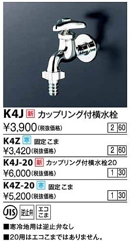 KVK 水栓金具【K4J】カップリング付横水栓〔GA〕
