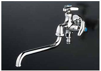 KVK 水栓金具【K21SPJ】屋外ホース接続ニップル付二口自在水栓〔GA〕