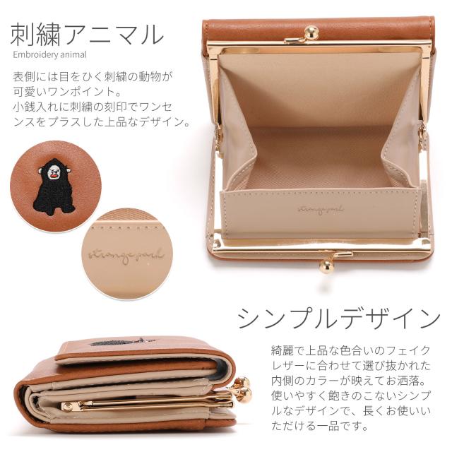 表側には目をひく刺繍の動物が可愛いワンポイント。 小銭入れに刺繍の刻印でワンセンスをプラスした上品なデザイン。