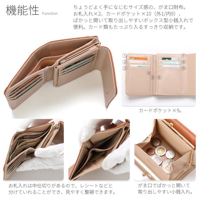 ちょうどよく手になじむサイズ感で、便利で使いやすいがま口財布。