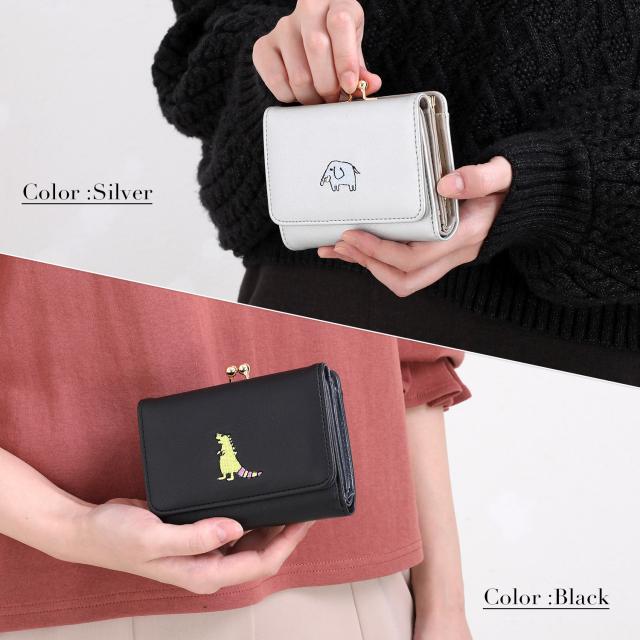 ミニ財布 レディース 三つ折り 財布 がま口 コンパクト 動物 刺繍 シンセティックレザー 小さい 薄い スリム 軽量 軽い 大容量 ボックス 小銭入れ 札入れ 仕切り カード たくさん入る ブランド 無地 シンプル 大人 女子 女性 おしゃれ かわいい 人気 プレゼント ギフト