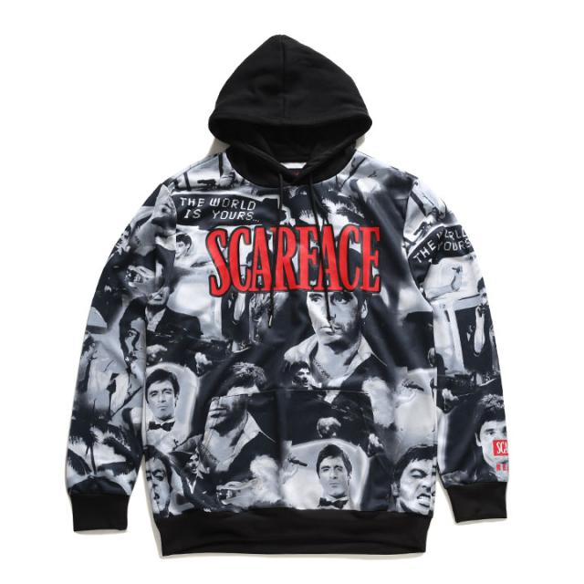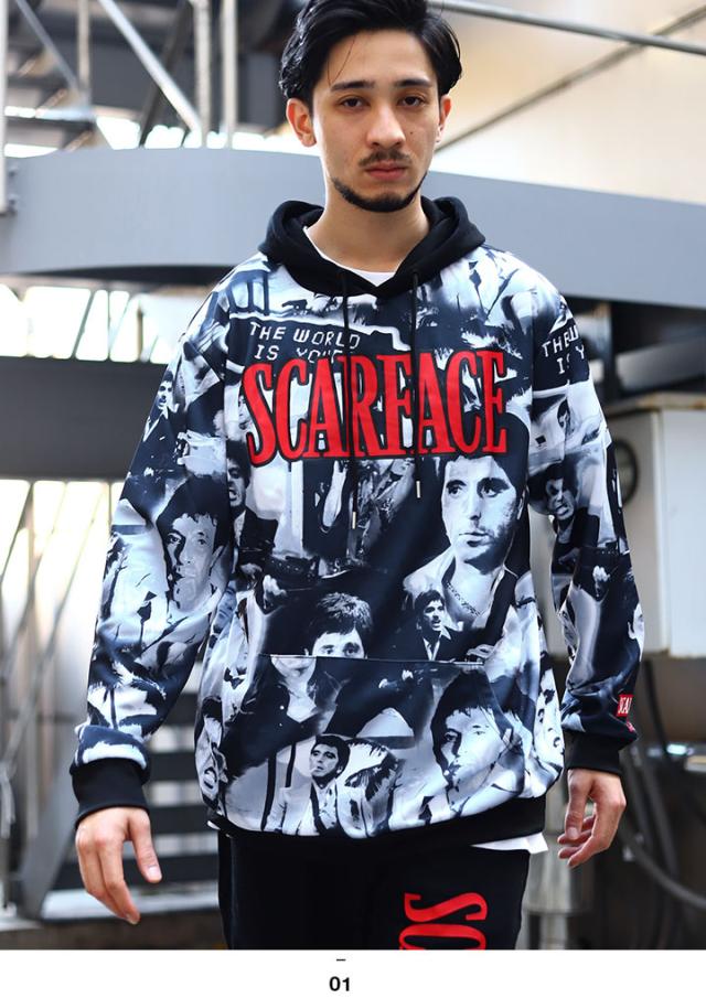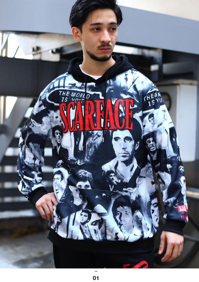 REASON × 映画 スカーフェイス パーカー ブランド スケボー 長袖 スウェット ジャージ メンズ 黒 ブラック 大きいサイズ Scarface 限定 コラボ 公式グッズ リーズン フードパーカー おしゃれ かっこいい 総柄 b系 ヒップホップ ファッション ストリート系 ハイ 服 21冬 SF1
