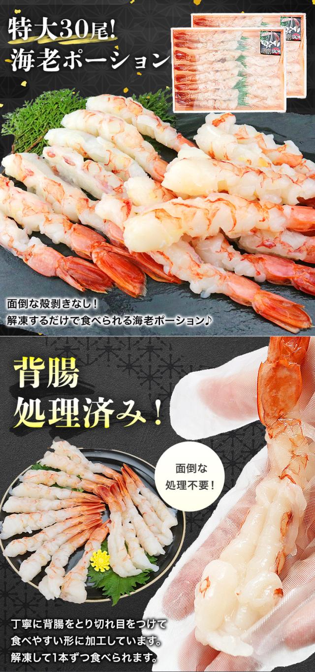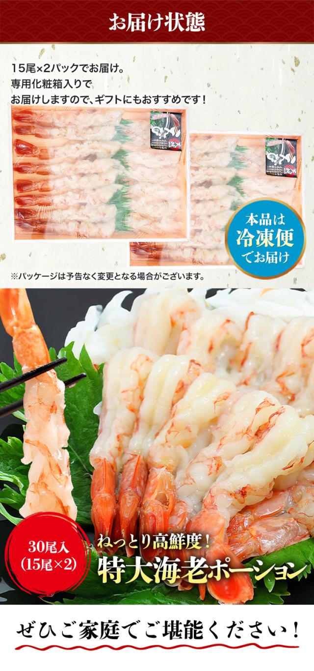 えび 刺身 特大 30尾 (15尾×2) エビ 海老 刺身用 赤海老 ギフト むきえび お刺身 生食 小分け ポーション ギフト プレゼント