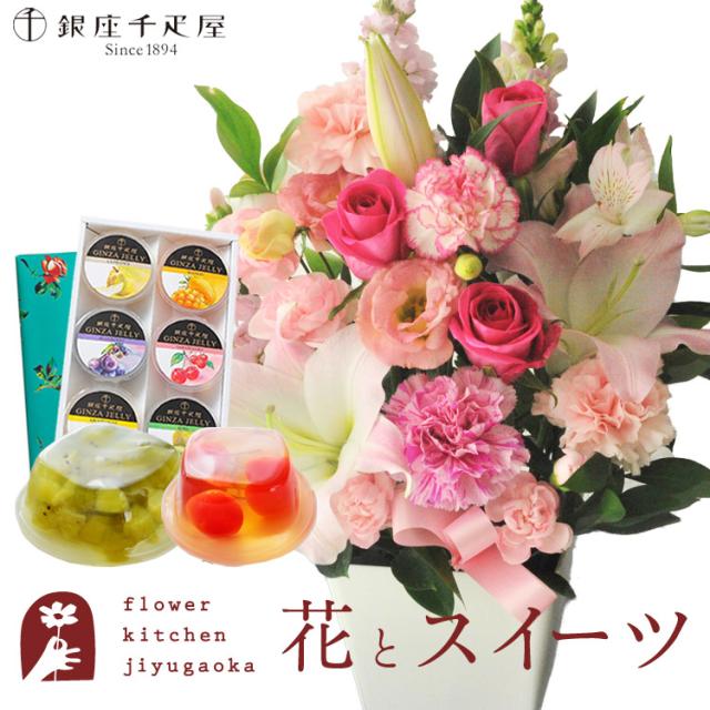 花とスイーツのセット お祝いユリアレンジ ベル「ピンク」+【銀座千疋屋】銀座ゼリー6個入りセット プレゼント 誕生日 記念日 お祝い花 即日発送 あすつく メッセージカード FKAASW