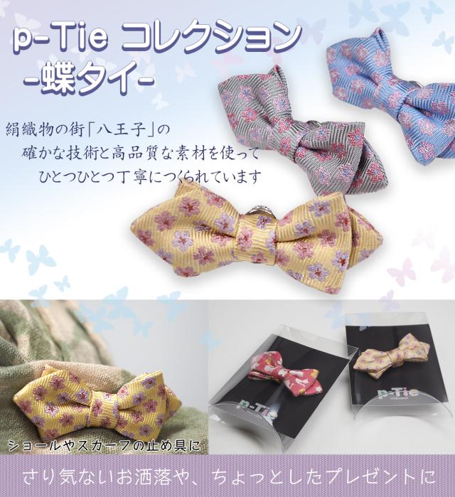 RR-2 桜柄(イエロー) p-Tieチョウ型 ピータイ 和柄シリーズ