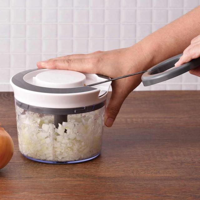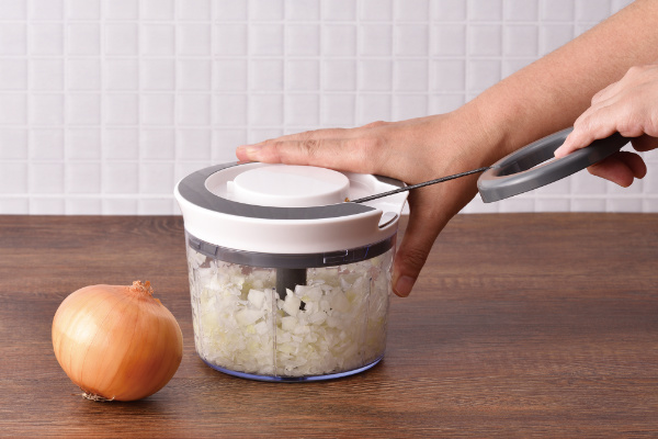 ハンドルを引っ張るだけで簡単にみじん切りが出来る