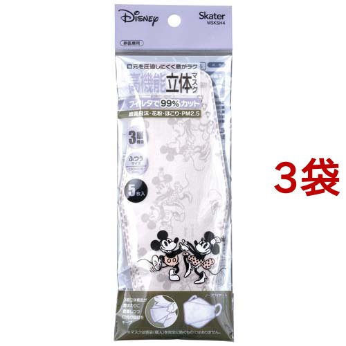 高機能立体マスク ふつうサイズ ミッキーマウス(5枚入*3袋セット)[立体マスク]