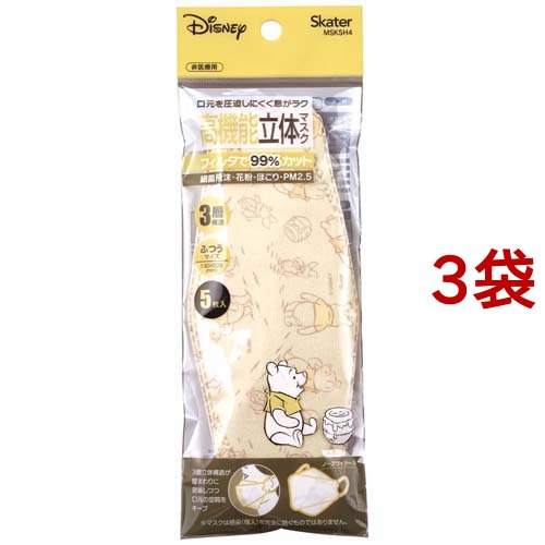 高機能立体マスク ふつうサイズ くまのプーさん(5枚入*3袋セット)[立体マスク]