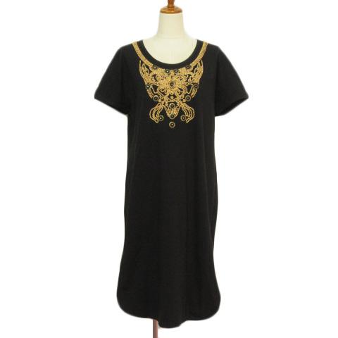 【中古】マリナリナルディ MARINA RINALDI ワンピース プルオーバー ビーズ スリット 半袖 S 黒 ブラック レディース