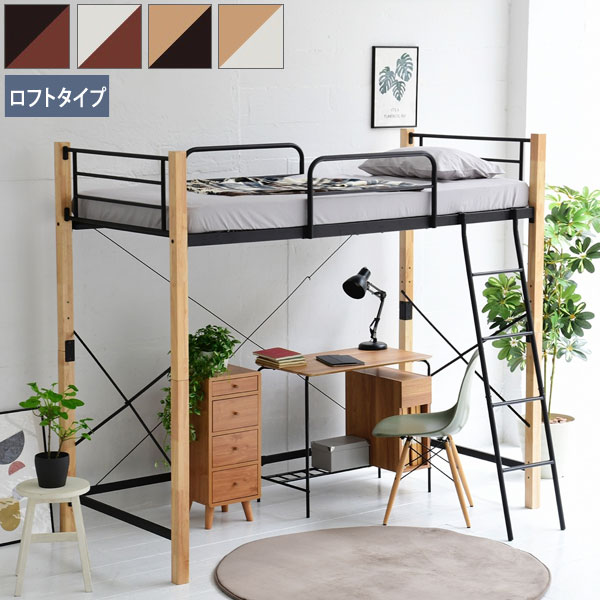 温かみのある天然木とクールなスチールのコントラストがおしゃれな、お部屋のスペースを有効活用できるロフトベッド。ベッド下のスペースにはデスクを置いたりソファを置いたり、生活空間の一部としても十分使える高さが確保されています。お部屋の雰囲気にあわせて選べる4カラー展開が嬉しい!