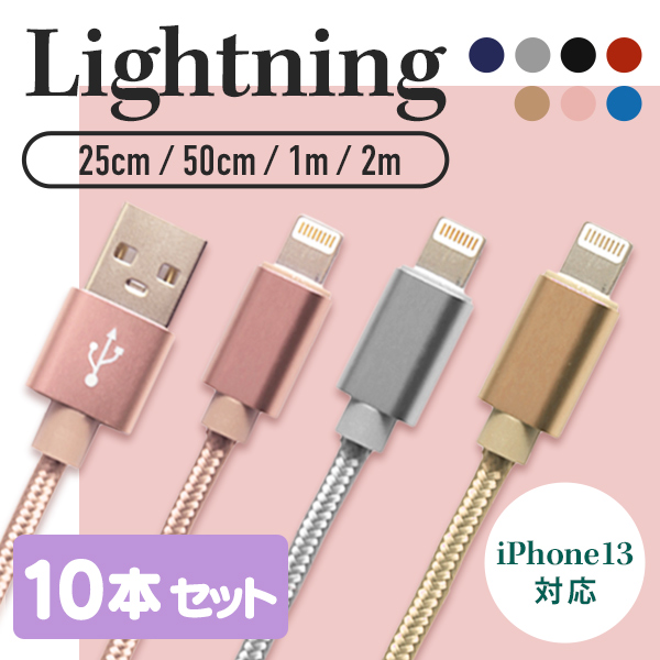 iphone 充電 ケーブル アイフォン 充電ケーブル Lightning ライトニング 充電コード 10本セット iPhone 充電器 25cm 50cm 1m 1.5m 2m lightningケーブル アイフォン ipad アップル iPhone14 iPhone13 iPhone12 iPad 送料無料