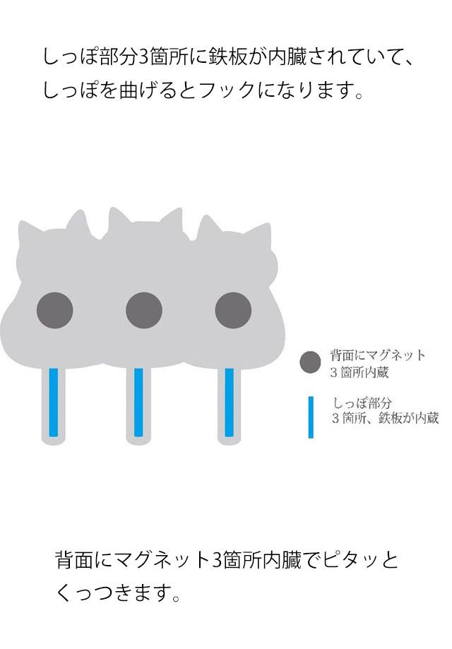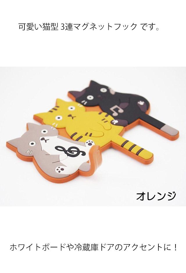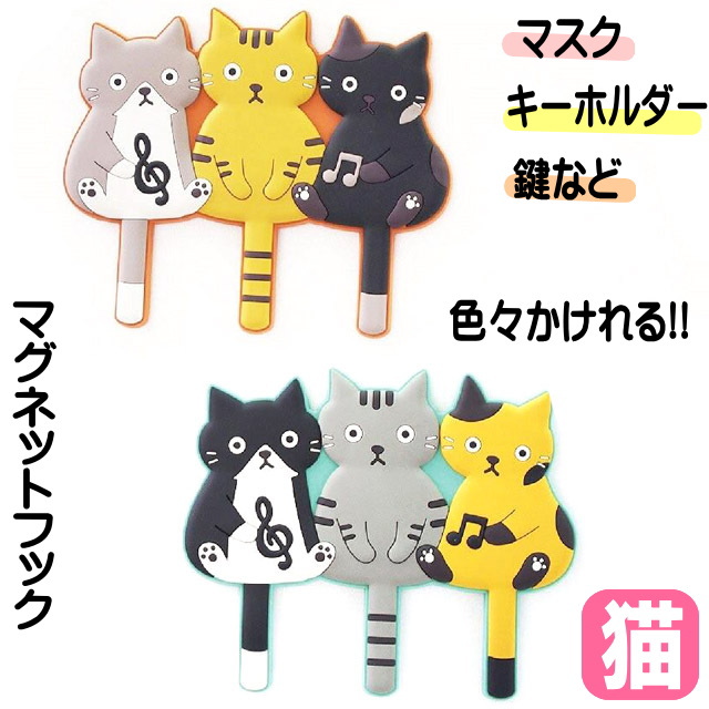 マグネットフック ネコ柄 猫 3連 耐荷重1kg 猫雑貨 猫グッズ かわいい おしゃれ 猫柄 ねこ ネコ プレゼント ギフト