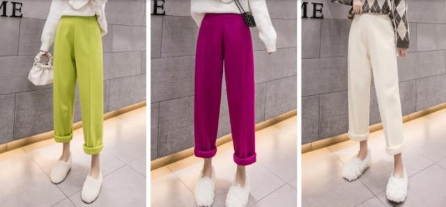 ハイウエストパンツ 美脚 細見え 黒 白 パープル グリーン ベージュ グレー ブルー ウール 無地 ゆったり 九分丈 秋冬 仕事 大きめ おしゃれ 楽 かっこいい 10代 20代 30代 お出かけ デート 着まわし 大人女子 カジュアル OL オフィス シンプル トレンド 人気